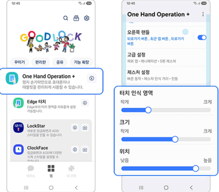 갤럭시 사용자 중 일부는 Good Lock 앱을 사용해 Edge 터치 또는 One Hand Operation+ 같은 커스터마이징 앱을 설치한 경우가 많아요. 이 앱들 역시 터치 인식에 영향을 줄 수 있습니다.