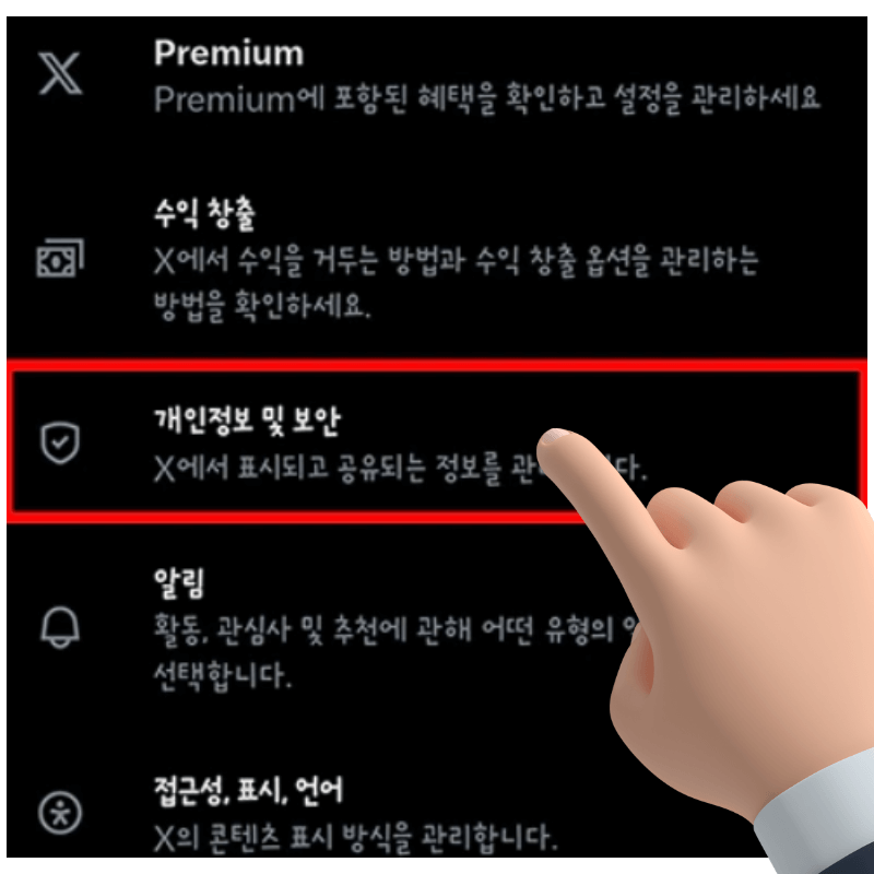 X 앱에서 설정 화면 진입하기